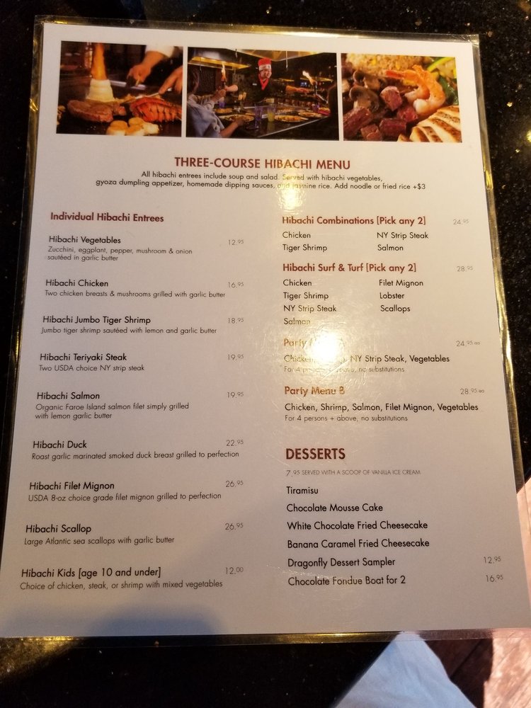 Dinner portion fresh made to order, teppanyaki sauteed in a sweet and savory homemade teriyaki sauce. Served with jasmine rice or fried rice and seasonal vegetables.
