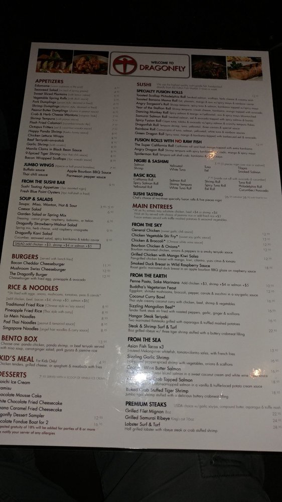 Dragonfly Restaurant & Bar is a trendy spot located in Linden, NJ, offering a fusion of fondue, sushi, and Asian cuisine. This restaurant is a perfect choice for groups, families, or a casual date night. With a diverse menu that includes classic rolls like Shrimp Tempura and Philadelphia Roll, as well as unique dishes like Dragonfly Crab Pot and Monster Mac & Cheese, there's something for everyone to enjoy. Customers rave about the freshness of the sushi, the flavorful chili cheese fries, and the mouthwatering eel and Philly Rolls. The atmosphere is welcoming, with attentive service and a full bar offering happy hour specials. Whether you're looking for a quick lunch, a family dinner, or a special celebration, Dragonfly Restaurant & Bar is a must-visit destination for delicious food and a great dining experience.